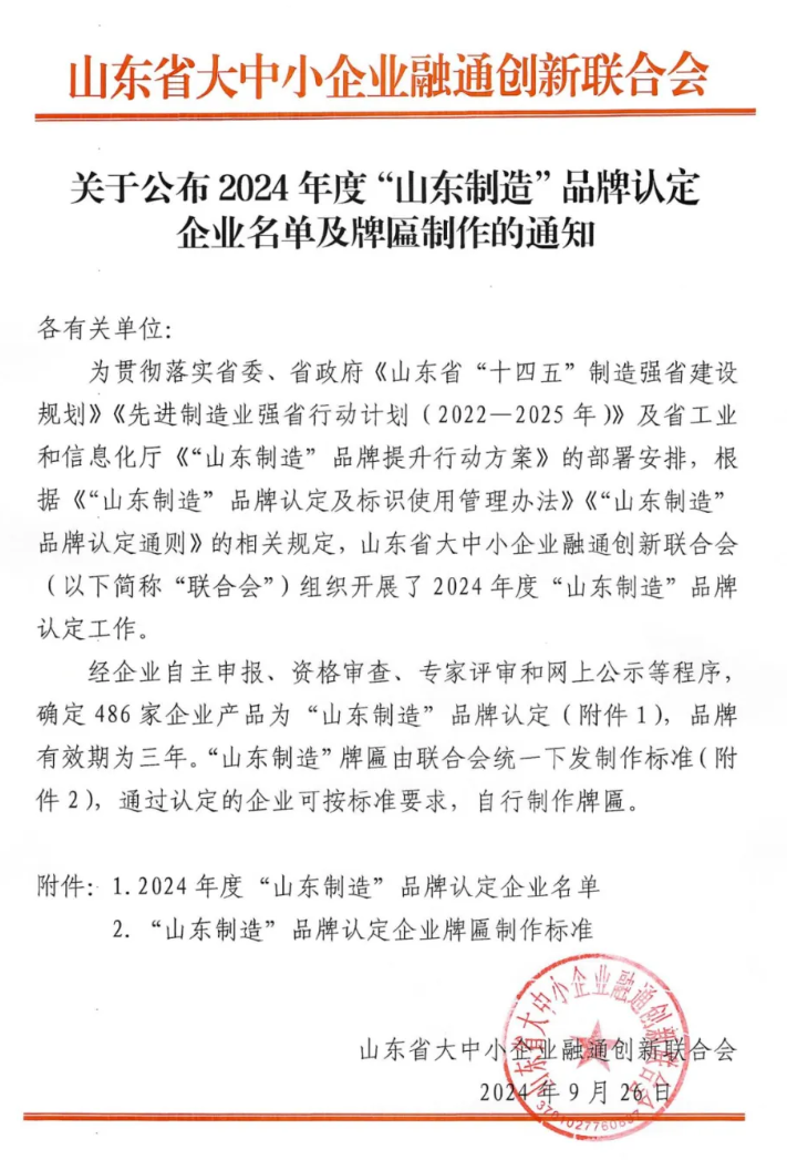 近日,山東省大中小企業(yè)融通創(chuàng)新聯(lián)合會發(fā)布了2024年度“山東制造”品牌擬認定企業(yè)名單,經(jīng)過嚴格的評審和層層篩選,我司的代表產(chǎn)品——防爆鋰電池單軌吊機車榮獲“山東制造”品牌認證!